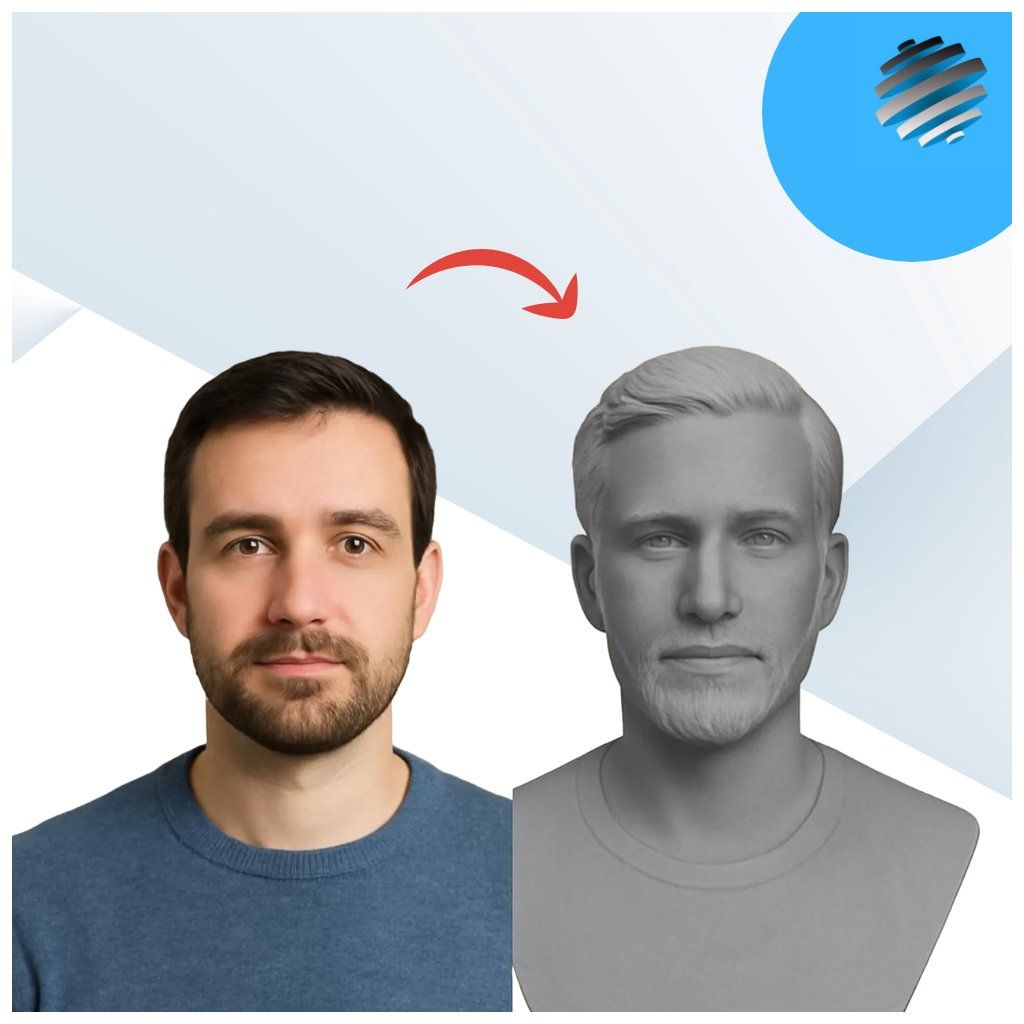 Stačí nahrát vlastní fotografii a vybrat požadovanou variantu busty – my zajistíme její kvalitní výrobu dle vašeho podkladu.